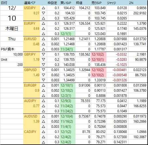 毎年最終週は動かない!という確信の元、オージー円を手仕舞ったら再度きつい上げが発生して、少し悔しい思いをしています。これもオージー円でマイナススワップになり始めた事が原因なのですが、言っても仕方ないのであきらめてます(でも惜しい!)