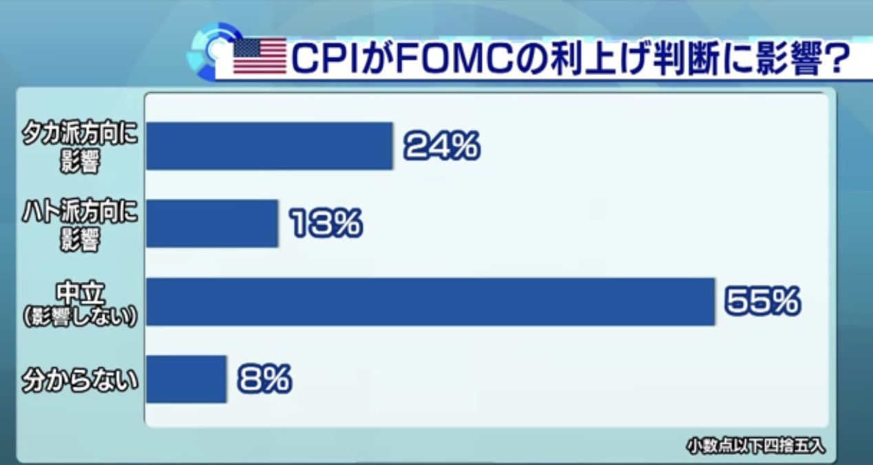 13日20時30分発表のアメリカのインフレ率、CPIが予想以上に低い数字が発表されると、皆が予想しているからです。